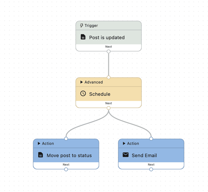 An Action Workflow in PublishPress Future Pro refers to a predefined sequence of steps that you can create and automate using our Action Workflow Builder. These steps streamline tasks such as: