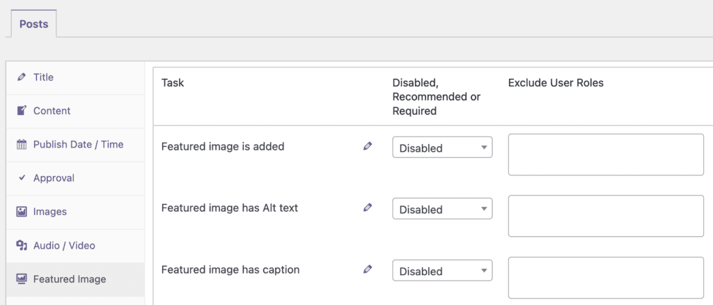 If you enable this Featured image option, it will be visible when you edit content. If your Featured image box is empty, this task will be marked in red in the sidebar: