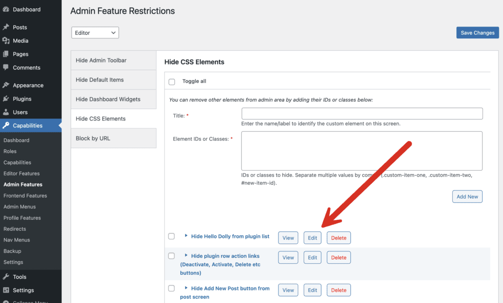 - Go to “Capabilities” then “Admin Features” in your WordPress menu.