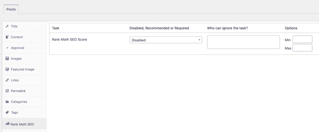 With the Pro version of the PublishPress Checklists plugin, you can require that site's content meets minimum standards with the Rank Math SEO plugin. If the content doesn't meet those standards, you can choose to show a warning, or prevent the post from being published.